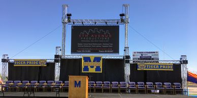 Need sound and lighting for your school pep rally? We can provide professional high impact sound, a wide variety of lighting, video screens, audio-visual production, disc jockey service and much more for your indoor or outdoor event.